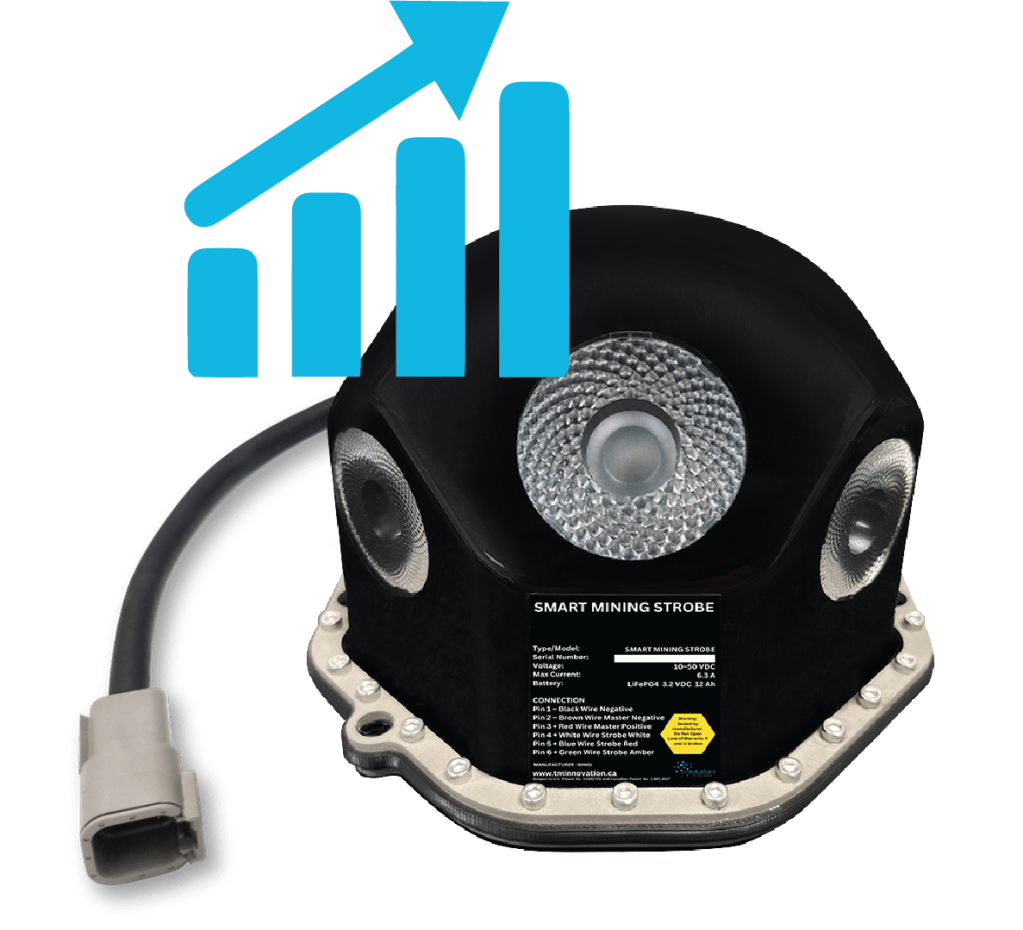The Smart Mining Strobe’s built-in battery > ensures uninterrupted performance, eliminating boosting incidents > and 100% of annual maintenance costs related to boosting/replacement incidents >