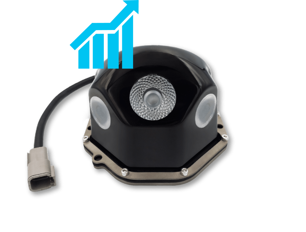 The Smart Mining Strobe’s built-in battery ensures uninterrupted performance, eliminating boosting incidents > and related costs after installation.
