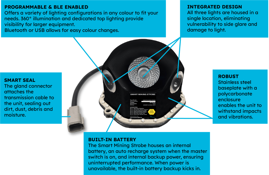 BLUE LIGHTS activate automatically when the vehicle’s master switch is ON (clear strobe will automatically de-activate in this case and internal battery begins to charge.
