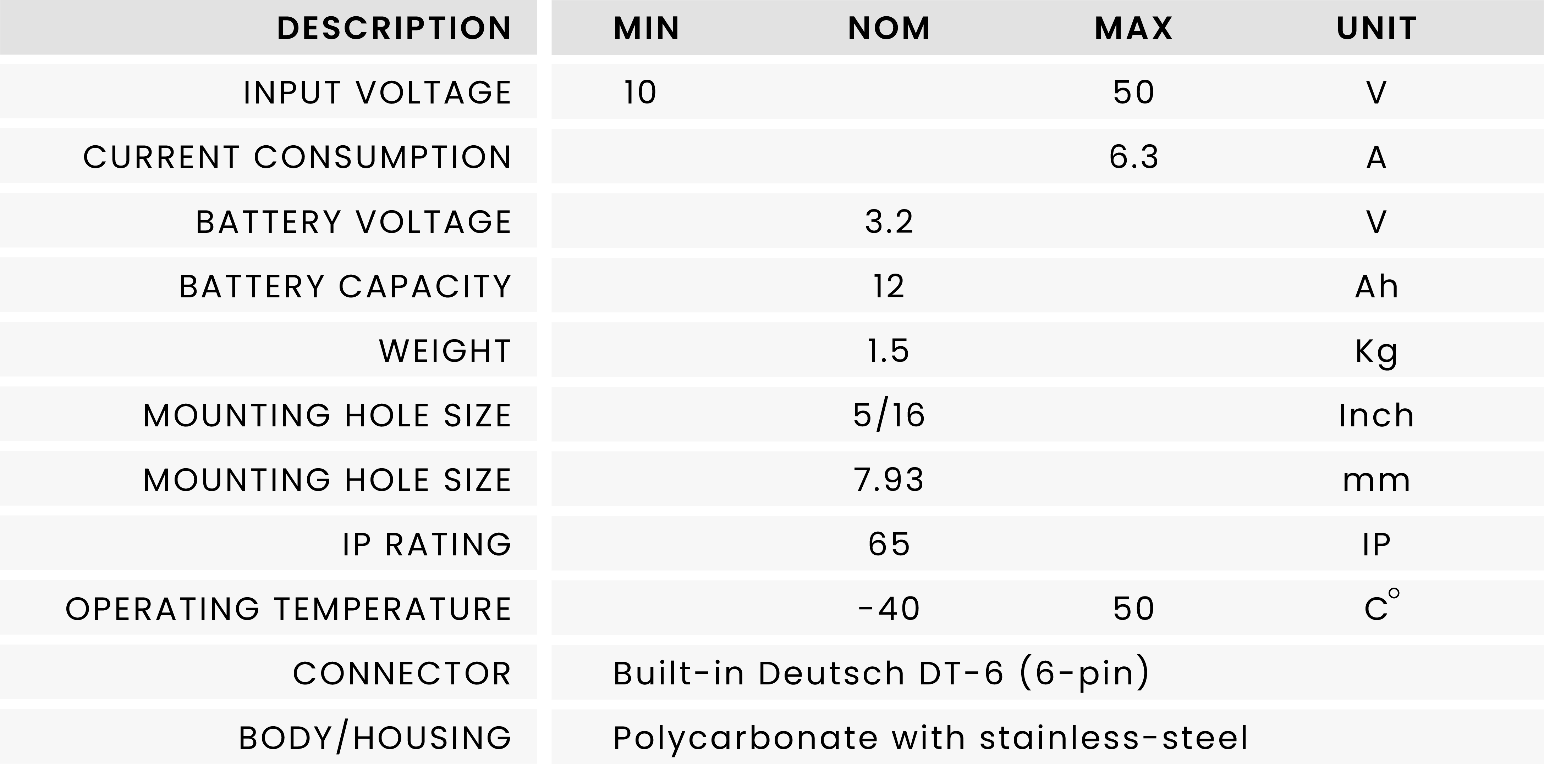 TECHNICAL SPECIFICATIONS