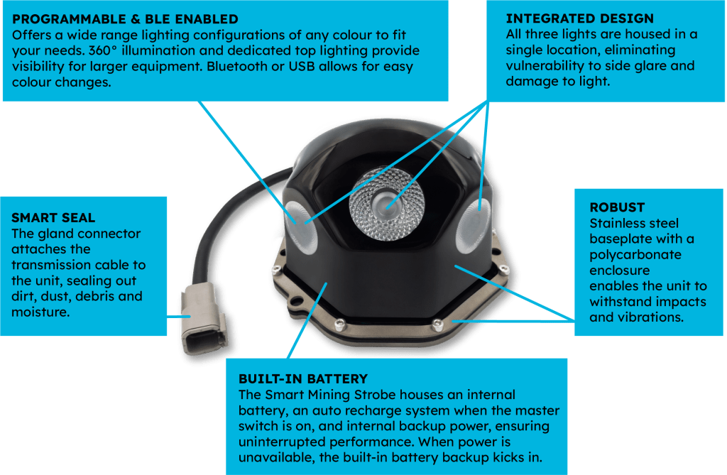 The Smart Mining Strobe’s internal battery